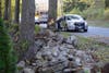 Driver Loses Control of Car, Hits Stone Wall and Tree