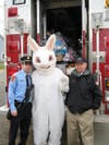 If you were among the lucky ones to find a specially marked egg, you could line up behind the 'Rescue- 1-15' firetruck to receive your prize, personally handed out by the Easter Bunny and volunteer firemen. The truck was loaded with plush bunnies and duckies of many sizes and colors, (104 prizes in all) which were purchased for this event by the volunteer department's Firemans' Fund.