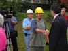 Despite the rain, local contractors and crews met with Governor Dannel P. Malloy and several special guests on Wednesday to tour the nearly finished construction of the 17 free-standing houses.