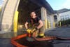 The teams stretched 200 feet of inch-and-three-quarter hose from Engine 1-13, advancing through the firehouse and hitting a target off the “B,” or left side, of the building.