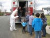 After the hunt, children and their parents lined up behind the 'Rescue 1-15' fire engine to trade in their marked eggs for a special prize, presented by...who else? The Easter Bunny, of course!