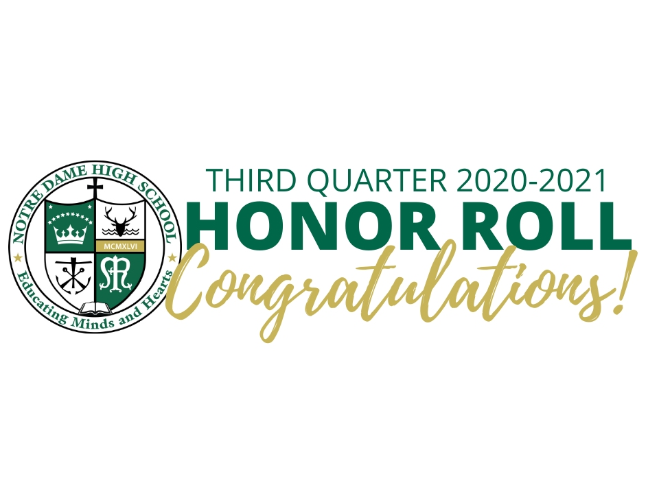 Notre Dame High School recently announced the Honor Roll for the Third Quarter of the 2020-2021 academic year.