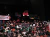 The governor entered the auditorium to a standing ovation. He tried to lighten the rainy day mood with a joke.