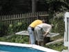 The man, who is about 50 years old, was working on a concrete encased well on High Street when he slipped and fell about 30 feet into water up to his neck. He clung to the side of the well until help arrived.