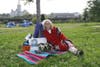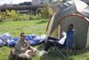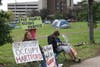 Some dozen or more tents covered the small expanse of green in the center of the city, and the protesters were calm but in good spirits as the wind whipped through their camp.