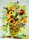 "Late Summer Blooms," by Maple & Main watercolor artist, Carolyn Emerson, will be given away to a lucky ticket holder. Β Tickets are free and available at the gallery during Pop Up weekend.