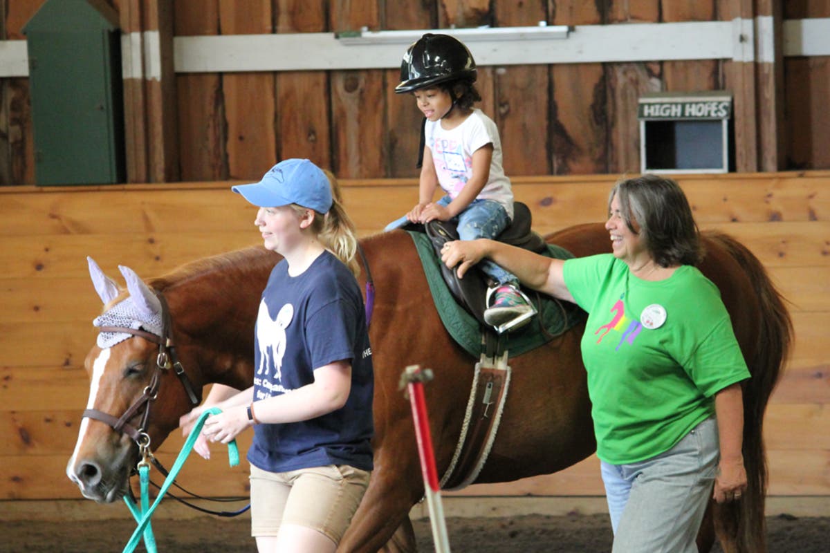 Over the course of a year High Hopes, an internationally recognized therapeutic riding and horsemanship center, relies on the help of over 650 volunteers to supplement its small staff and provide programs for a wide range of individuals and groups as well as support it’s fundraising activities. Participants include children and adults with physical disabilities, veterans living with PTSD, children grieving the loss of a parent, families recovering from domestic violence and individuals and their families supporting a loved one with a life-long cognitive disability. High Hopes serves participants from over 60 towns in Connecticut and beyond, works with ten different school districts and over 30 agencies from across the state. In the summer High Hopes staff also provide an off-site program at Harkness Camp in Waterford.