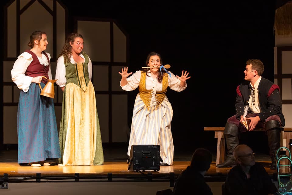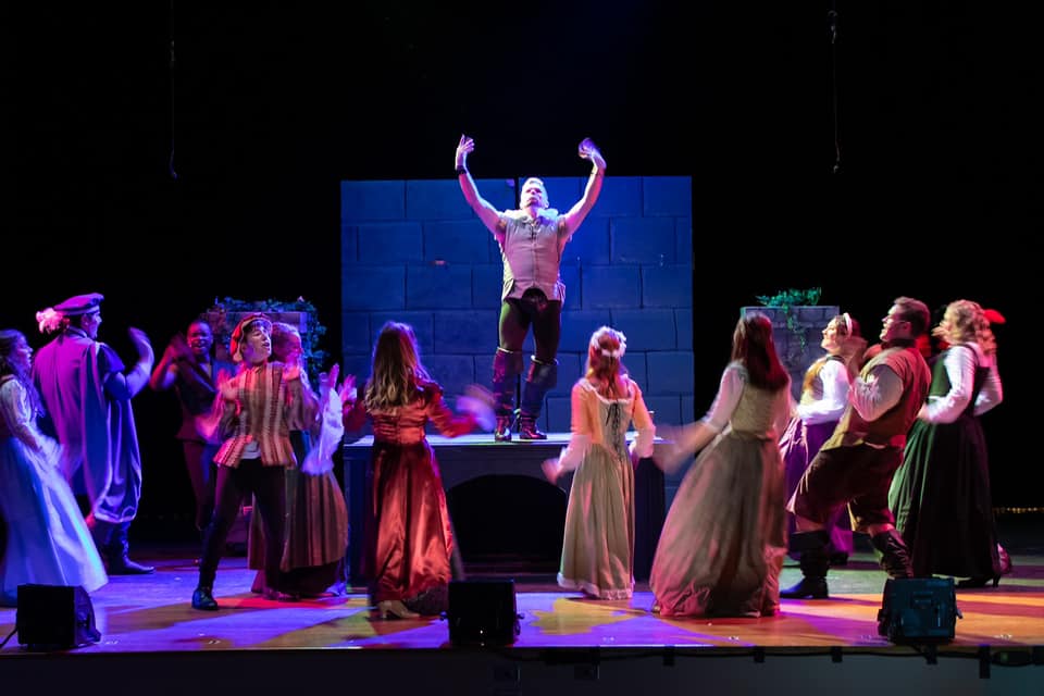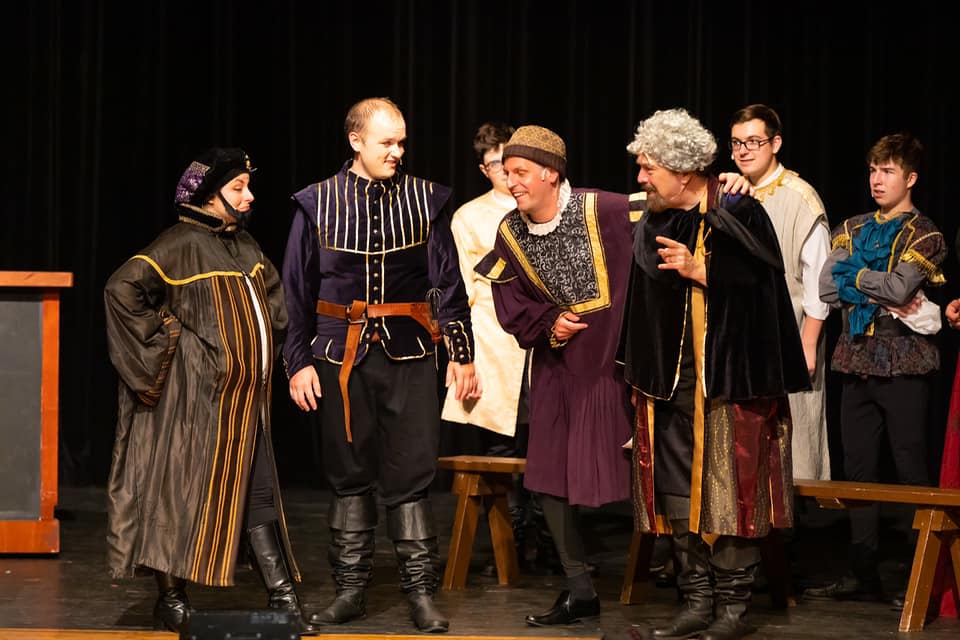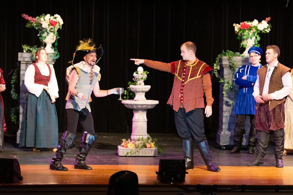 Rob Bevacqua played the patron Lord Clapham and Nick Kasprzak was a riot as Shylock. Chris Gregor sang so very well as the Minstrel, despite some annoying microphone issues, as well as playing Snug, with Kyler Christina as Robin, Jack Lombardo as Peter Quince and Justin Berg as Tom Snout.