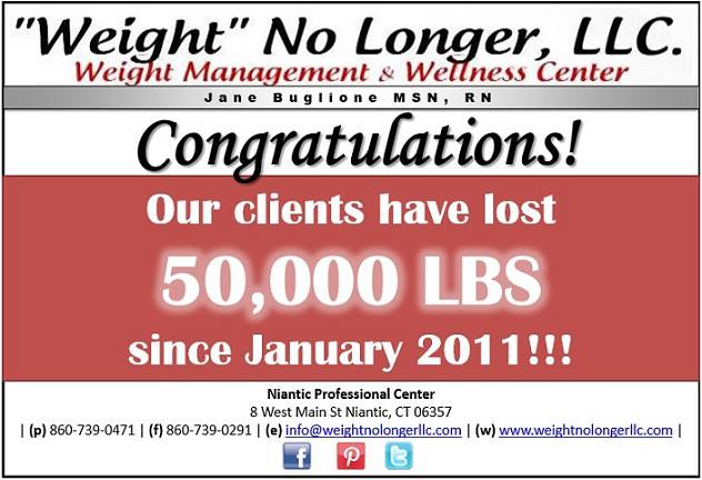 Congratulations to "Weight" No Longer LLC for helping people throughout Southeastern CT and beyond to lose 50,000 pounds!