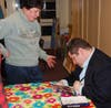 Goldberg, who covered the women’s team for the Hartford Courant from 2001 to 2006, has just released his book, “Bird at the Buzzer: The Greatest Women’s Game Ever Played.” He had the full attention of 40 die-hard Husky fans as he read passages from the work about the watershed game that took place ten years ago this month on March 6, 2001.