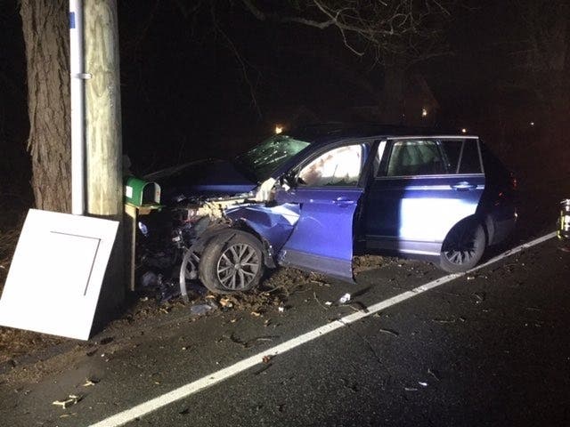 The VW Tiguan was heading south about two-tenths of a mile north of the Route 74 intersection when it veered off the right side of the road and then hit a mailbox, a utility pole and a "large tree," according to a state police crash report.