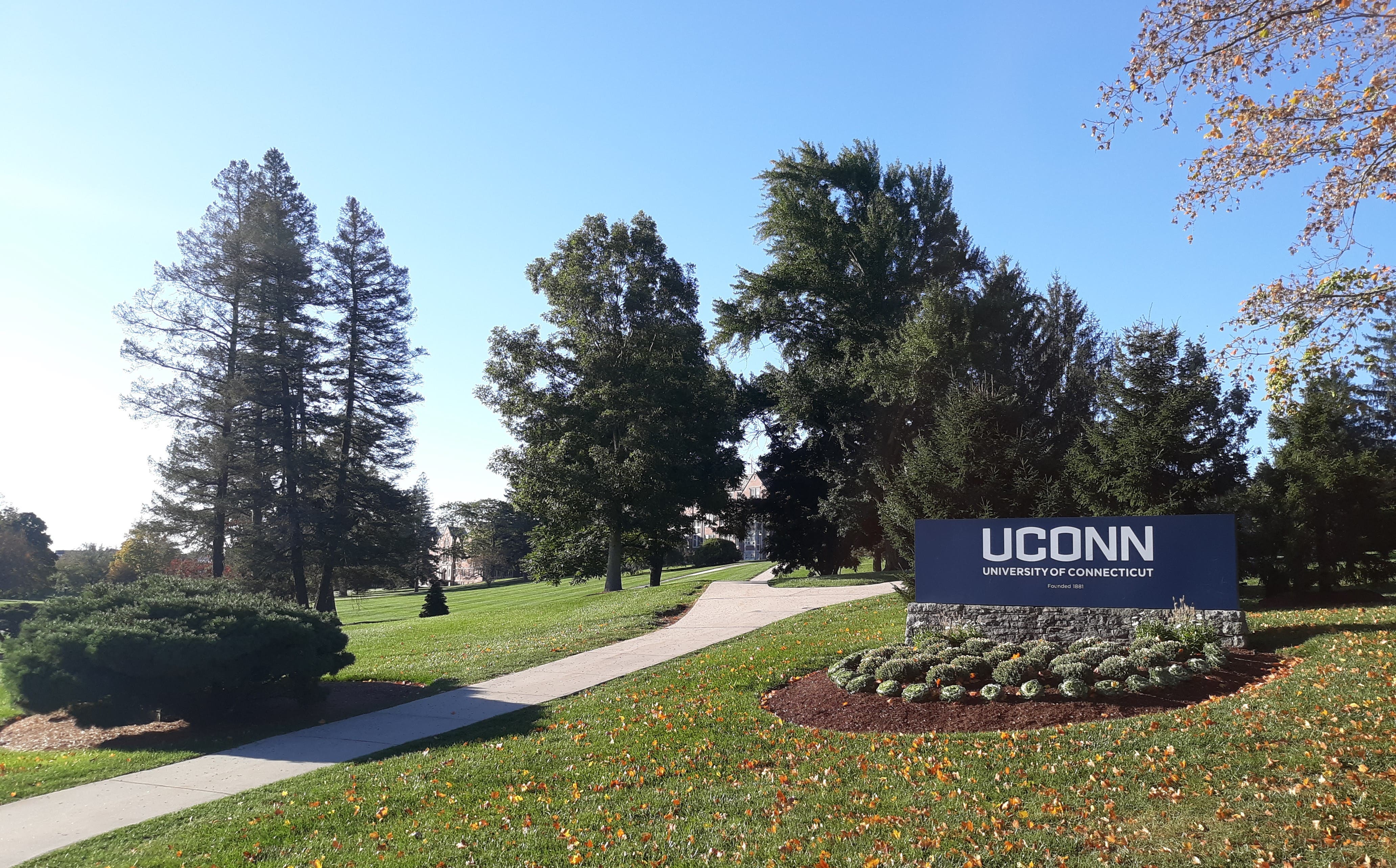 The main entrance of the University of Connecticut campus in Storrs. (Tim Jensen/Patch Media Corp.)
