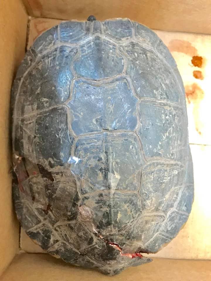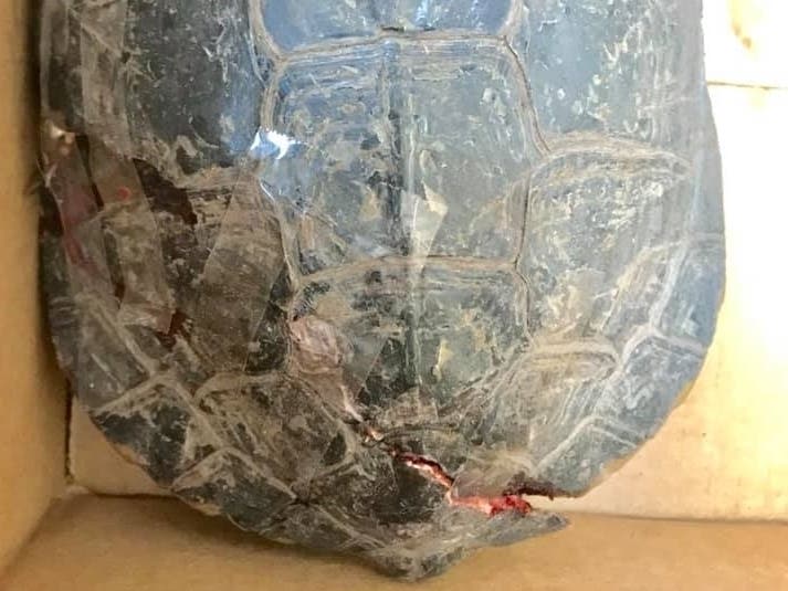 Animal control officers were able to pick up the turtle, whose injuries included a cracked shell, according to the report.