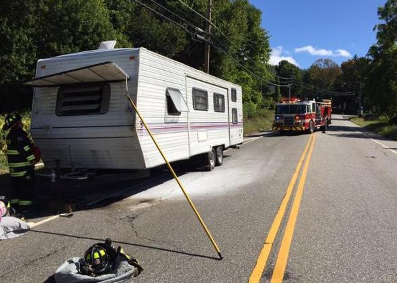 The Tolland Fire Department closed Route 30 at Route 74 Friday afternoon due to a fire in a recreational vehicle.