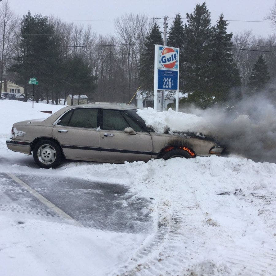 Tolland Firefighters Take Care of Burning Car Amid Snowflakes on Tuesday
