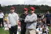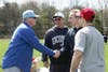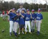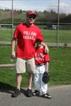 The ceremony ended with the traditional first pitch. Head Umpire Dan Bracken took his spot behind the plate, while Kelly Shea and Sarah Supczak teamed to throw out the first pitch for softball, and twins Jack and Eva Riggot did the honor for baseball.