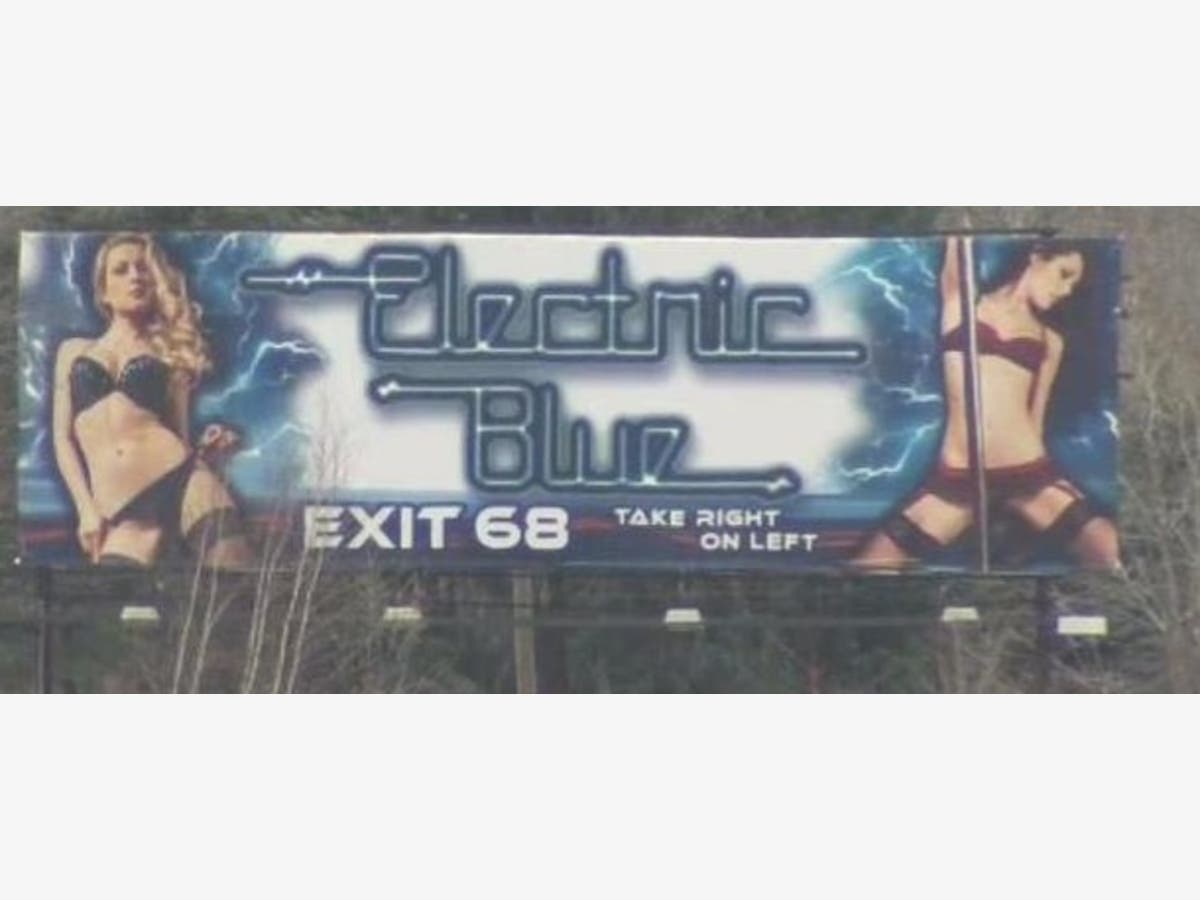 The Electric Blue, a strip club, maintains a billboard constantly between exits 70 and 69 along Interstate-84 and the latest version shows dancers in bikinis and one seemingly about to do a pole dance.