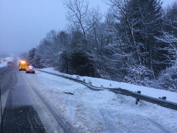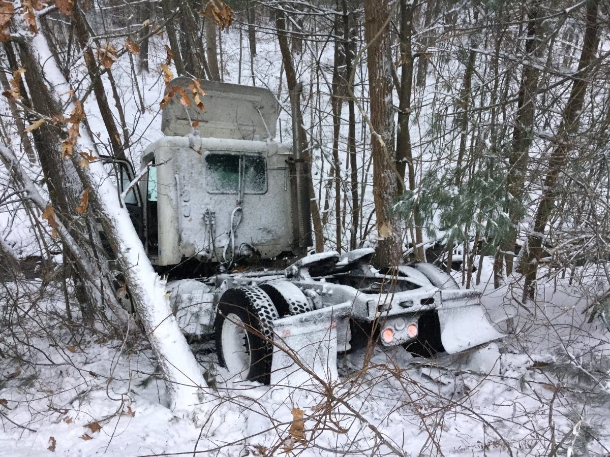 The accident took place at about 7:30 a.m. on the westbound side of I-84, just prior to Exit 68. It was the second truck crash along that part of the highway since snow began falling Sunday evening. A tractor-trailed rolled over early Monday.