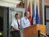 86 year-old WWII veteran James Frisino told listeners at Trumbull's Memorial Day ceremony to work for peace.
