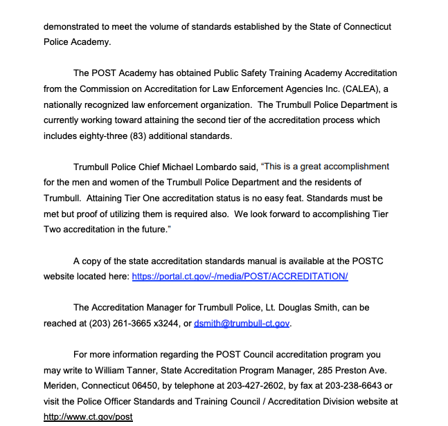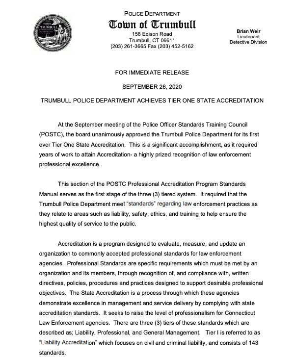 This press release was produced by the Town of Trumbull. The views expressed here are the author’s own