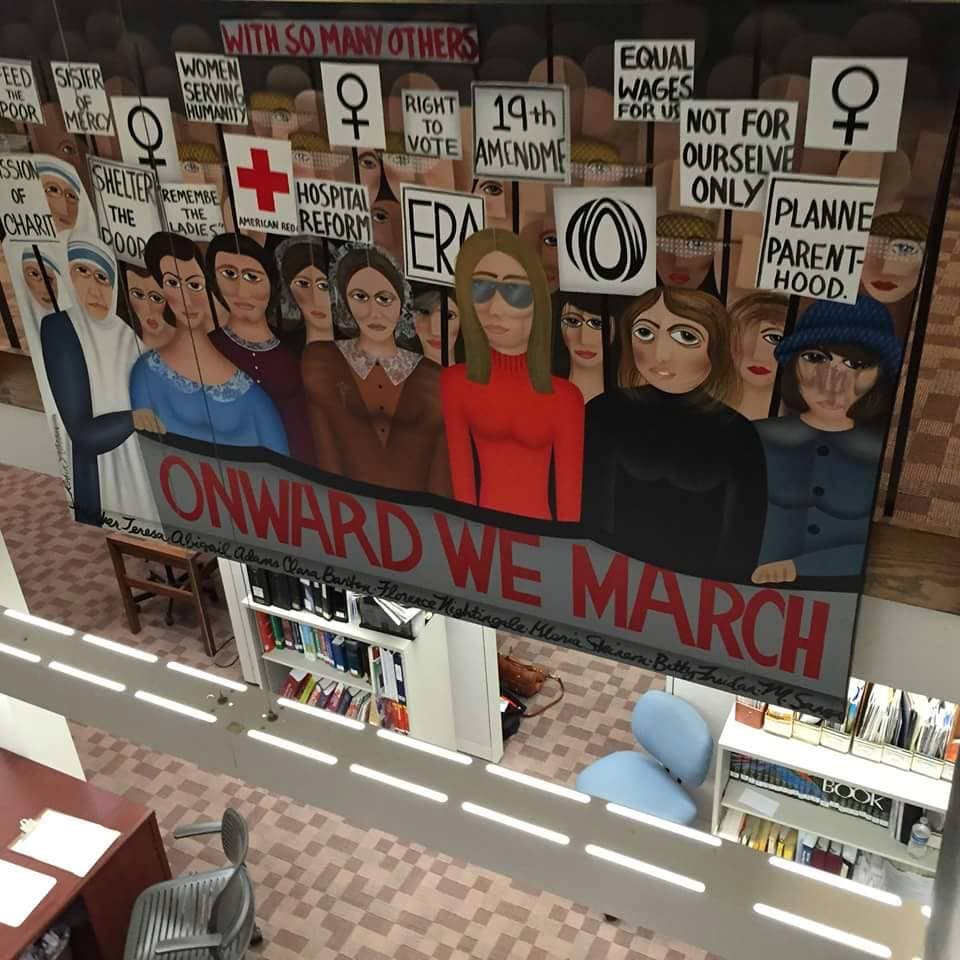 My reaction to the vandalism to Margaret Sanger in the painting, Women United, Women of Purpose, in the Trumbull Library is two-fold. I, of course, am saddened that this happened in my home town of forty-two years, but I understand the emotional intensity that surrounds the issue of abortion, a subject the painting never intended to raise. I’m also confident that the majority of Trumbullites would not condone such an action. I am sorry for the person who felt so compelled and will not press charges for property destruction. I believe that those who object have misunderstood the important message that the painting represents. The text that accompanies the art makes clear that these women, Mother Teresa among them, are being honored because they “extended their traditional roles into the larger sphere and pioneered institutions to care for the sick and destitute, the wounded and disabled, and championed a safety net for people with the greatest needs.” Certainly, these goals are not objectionable. One cannot understand the meaning of any of the paintings in this collection without reading the crucial descriptive narratives. The words and the art inseparable.