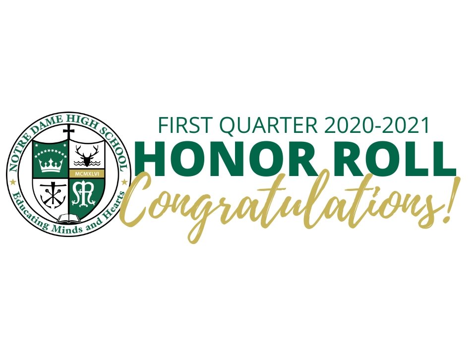 Notre Dame High School recently announced the Honor Roll for the First Quarter of the 2020-2021 academic year.