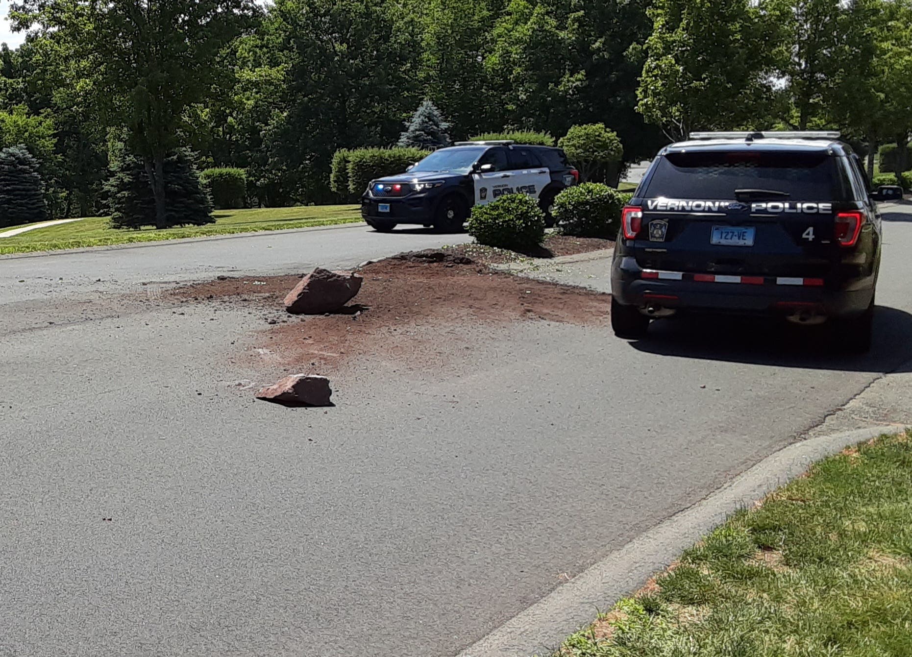 The vehicle was located by police and firefighters on its side with a woman and a baby inside. The baby was secure in a car seat, police said at the scene. Vernon police estimated the child to be less than a year old.