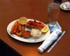 It’s a toasted New England hot dog roll overstuffed with chunks of lobster meat fresh from the claws. Its brethren are hanging out in a tank just inside the front door.