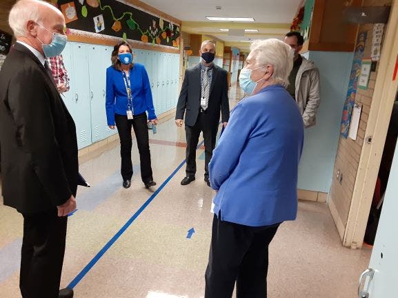 Courtney said being at Northeast School brought him back to a time when his son, Bobby, who's now 30, was a student there. Courtney even bumped into a familiar staff member Ellen Burke and exchanged pleasantries with her before visiting two classrooms.