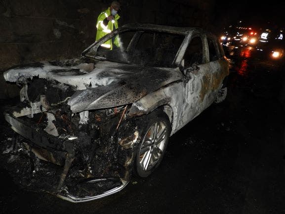Emergency responders converged on the scene at 2:43 a.m. The burned vehicle is believed to be an Audi. It was unoccupied and there were no injuries, police said.