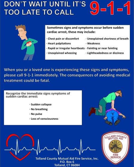 Towns across the region are sending out announcements to promote what is being dubbed the "Don't Wait Until It's Too Late to Call 911" campaign. It was created by the Tolland County Dispatch Center in partnership with local hospitals and EMS providers."