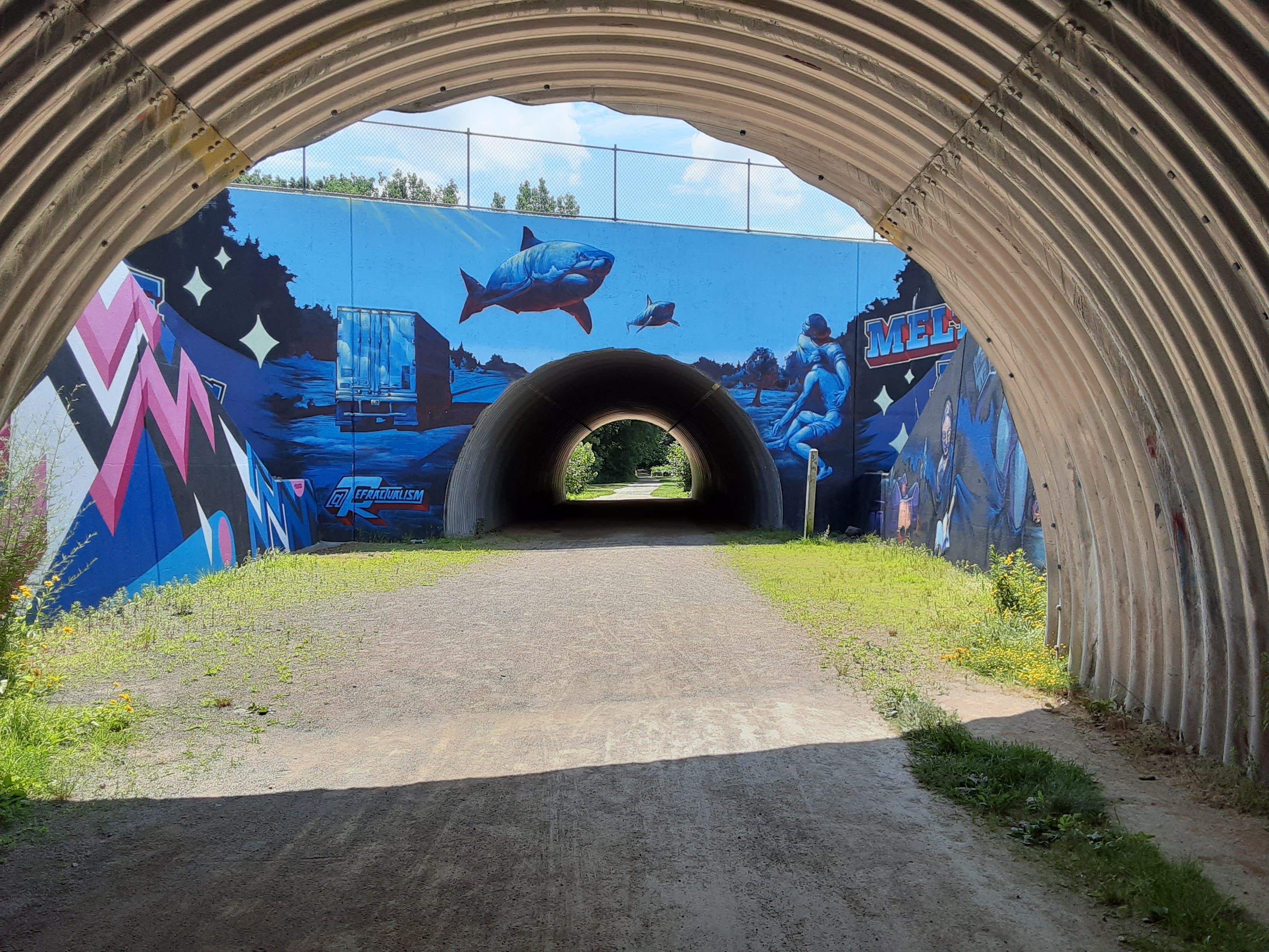 The volunteers also commissioned the colorful mural at the Interstate 84 overpass. They maintain the mural and seek donations to replace it every few years.
