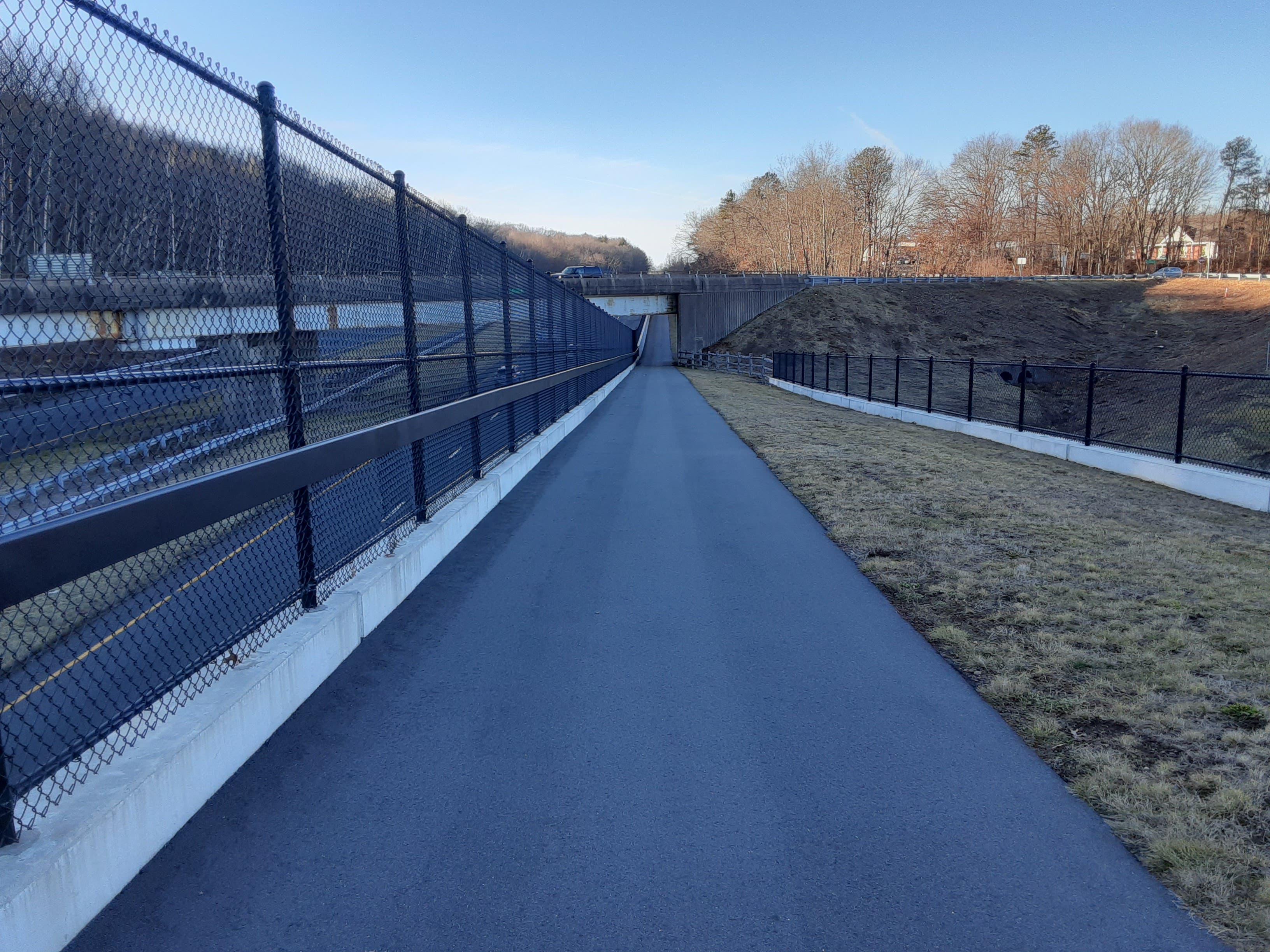 The bridge spans the Route 44, Route 6 and Interstate 384 interchange at the Notch. It's part of the Charter Oak Greenway and Hop River State Park Trail systems, which are also intertwined with some local trail systems.