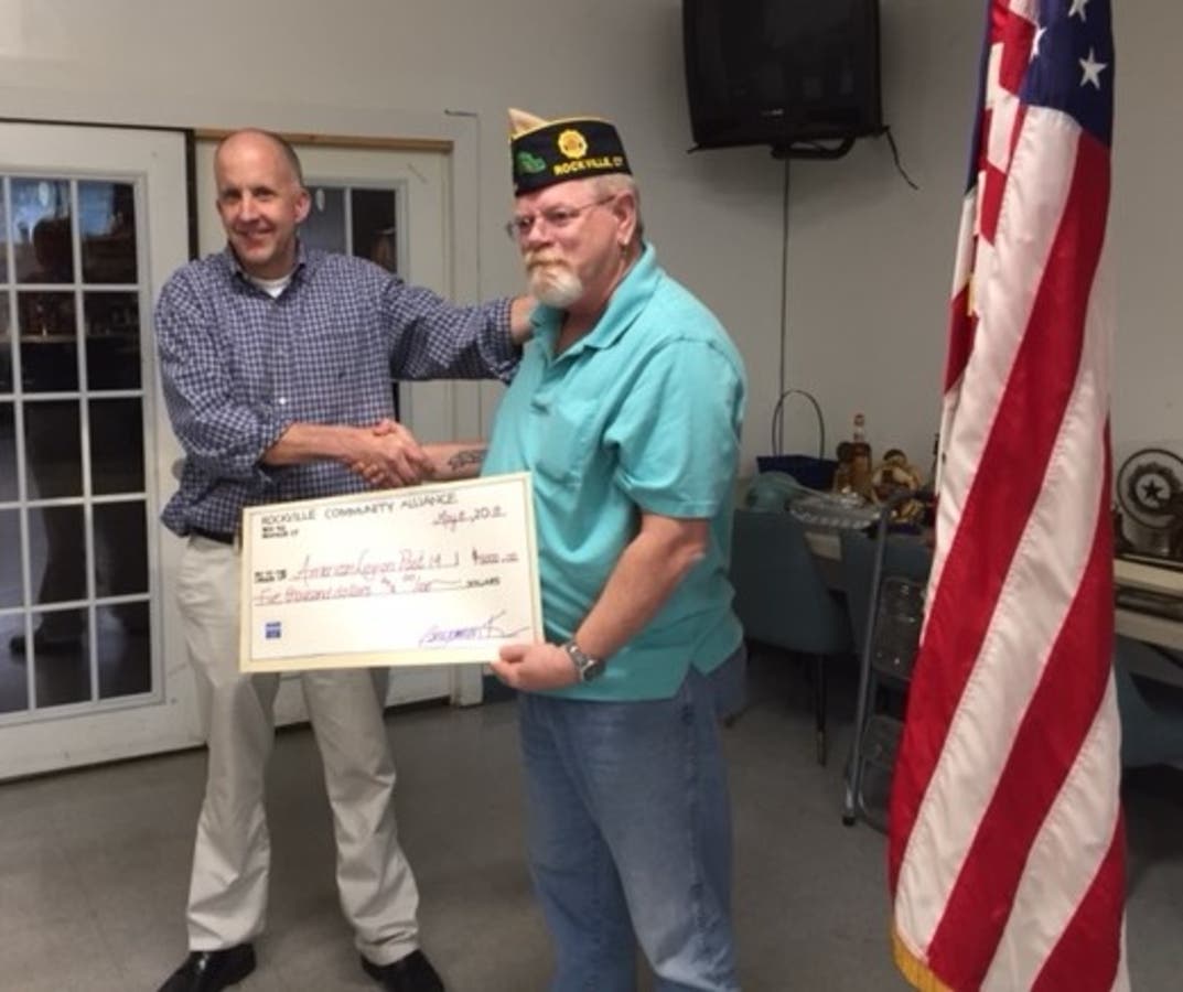 During a ceremony on Monday evening, the brew fest organizing team presented Post 14 with a check in the amount of $5,000. In the photo, Benjamin Klimczak, President of the Rockville Community Alliance
