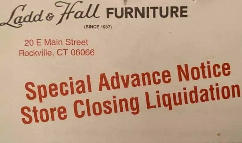 VERNON, CT — Preparations were under way Tuesday for a liquidation sale marking the end of the storied Ladd & Hall Furniture store in the Rockville section of Vernon.