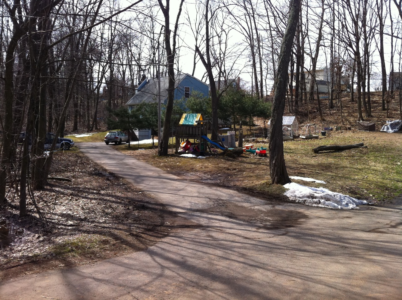 Investigators then descended upon the scene, a rugged area that was once a town dump that features steep inclines, rocky terrain and a stream. The two homes share a driveway and are set back a considerable distance and down a steep hill from the road.