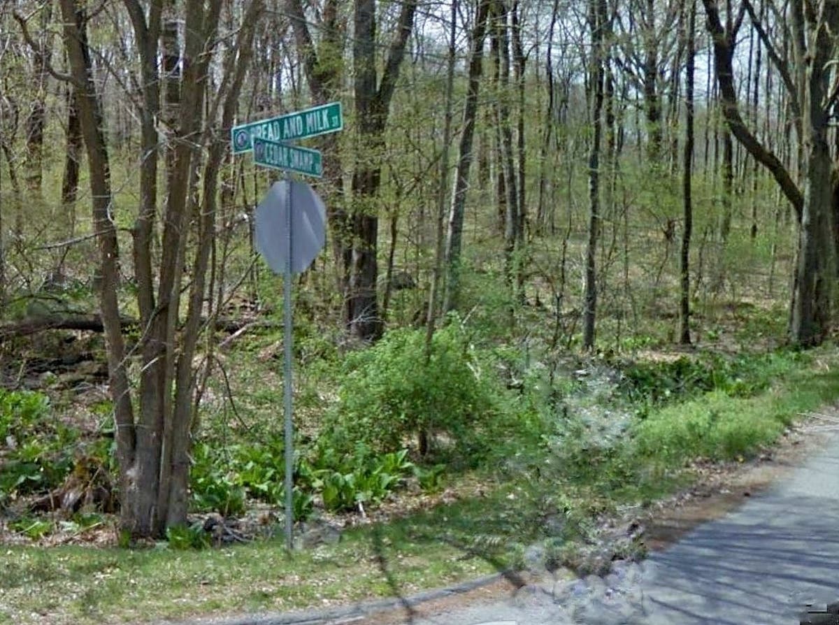 If you're traveling in Tolland County, you may come across a pair of street signs bearing the words "bread and milk" in two different towns, about five miles apart from one another.
