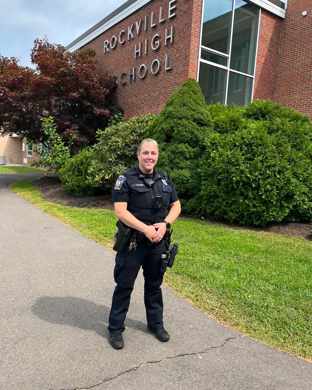 And Officer Cara Momnie brings a lot of campus experience to Rockville High School and the town's other schools.