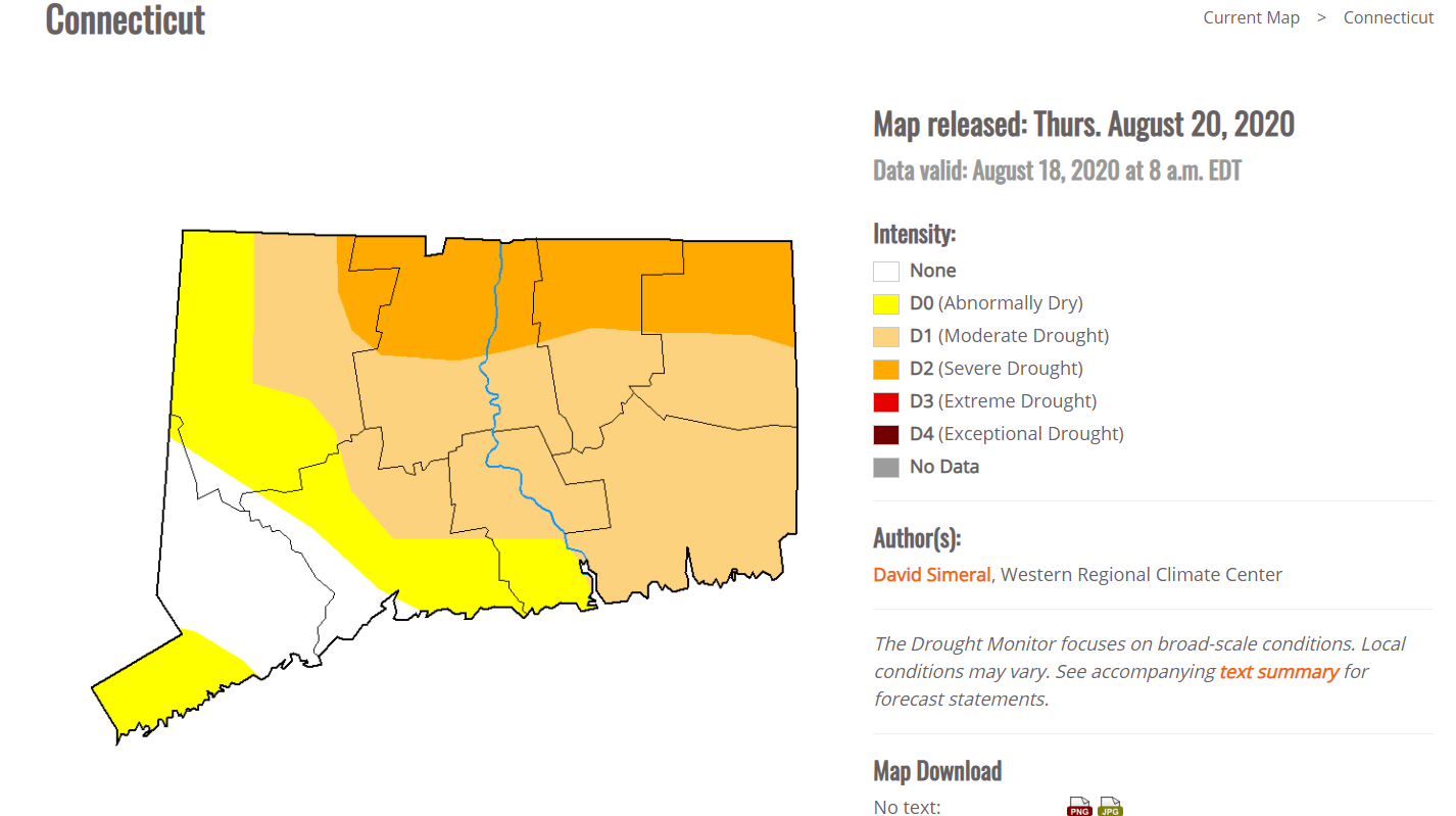 "We have not issued any voluntary conservation requests for the our northern-western water system, which includes the Shenip," Connecticut Water Company spokesman Daniel Meaney said Wednesday. "That said, it has obviously been dry. The US Drought Monitor, as of last week, had the region at "Severe Drought."