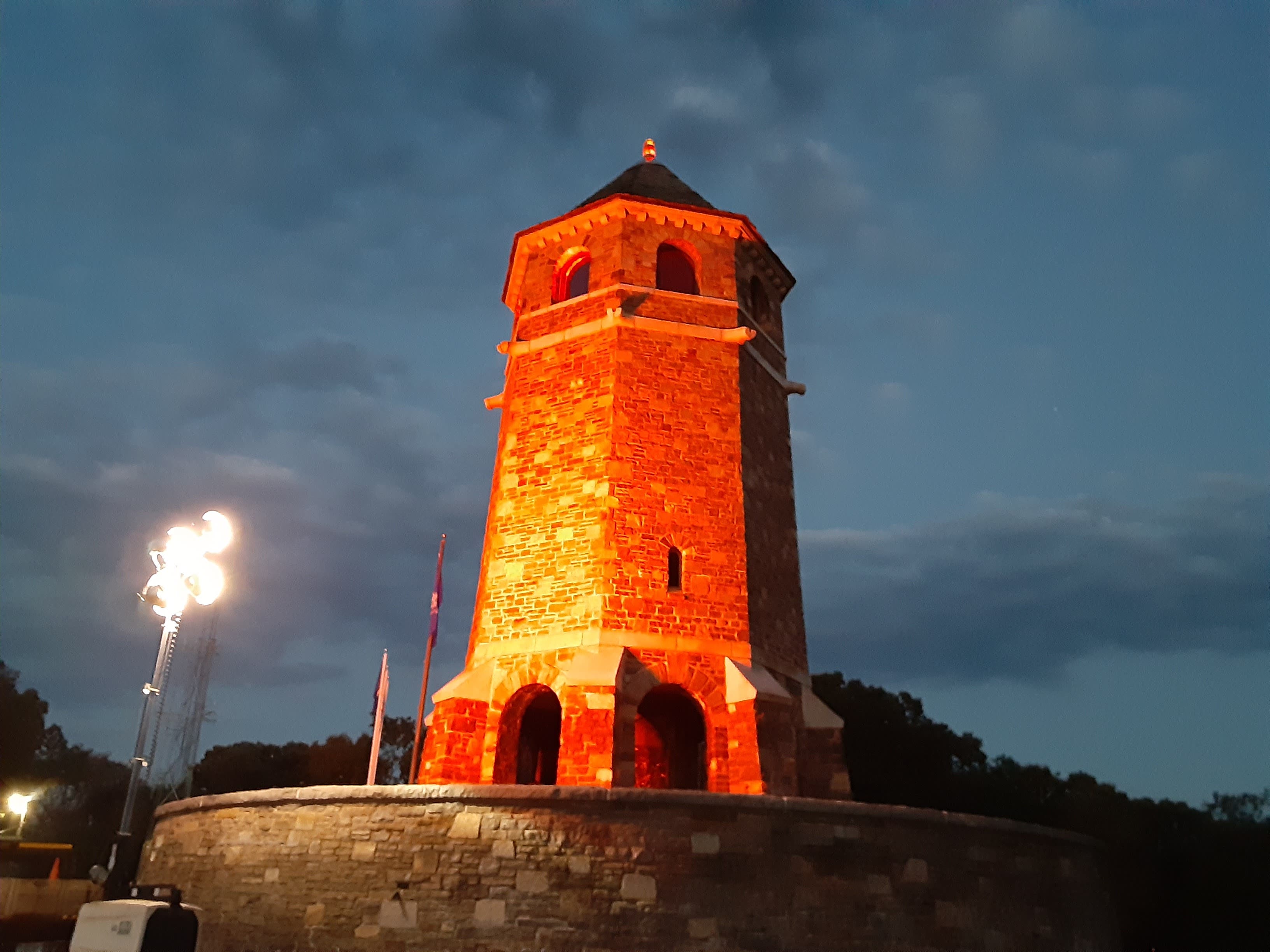 The red lights came on just before 7 p.m. and the tower was lit until 11 p.m. The light could be seen clearly from not only the park but from vantage points in Downtown Rockville and Lower Butcher Road in Ellington.