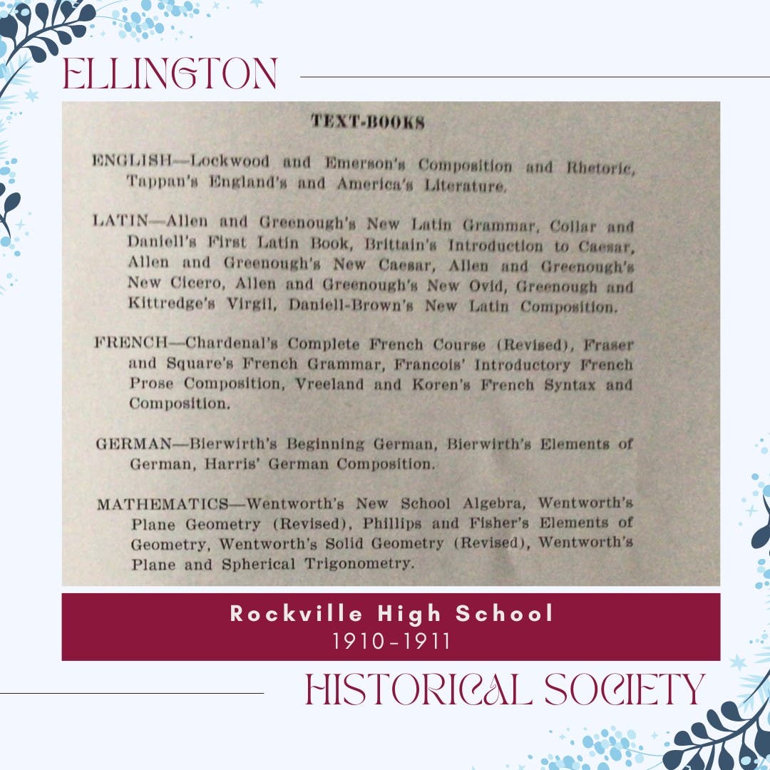 So why would the Ellington Historical Society feature articles from Rockville High School in its archives? Well, until Ellington High School was built, students from Ellington — and even East Windsor — would take classes there. In fact, one of Ellington's most celebrated citizens, Nellie McKnight, was a sophomore during the 1910-1911 school year and would graduate in 1913.