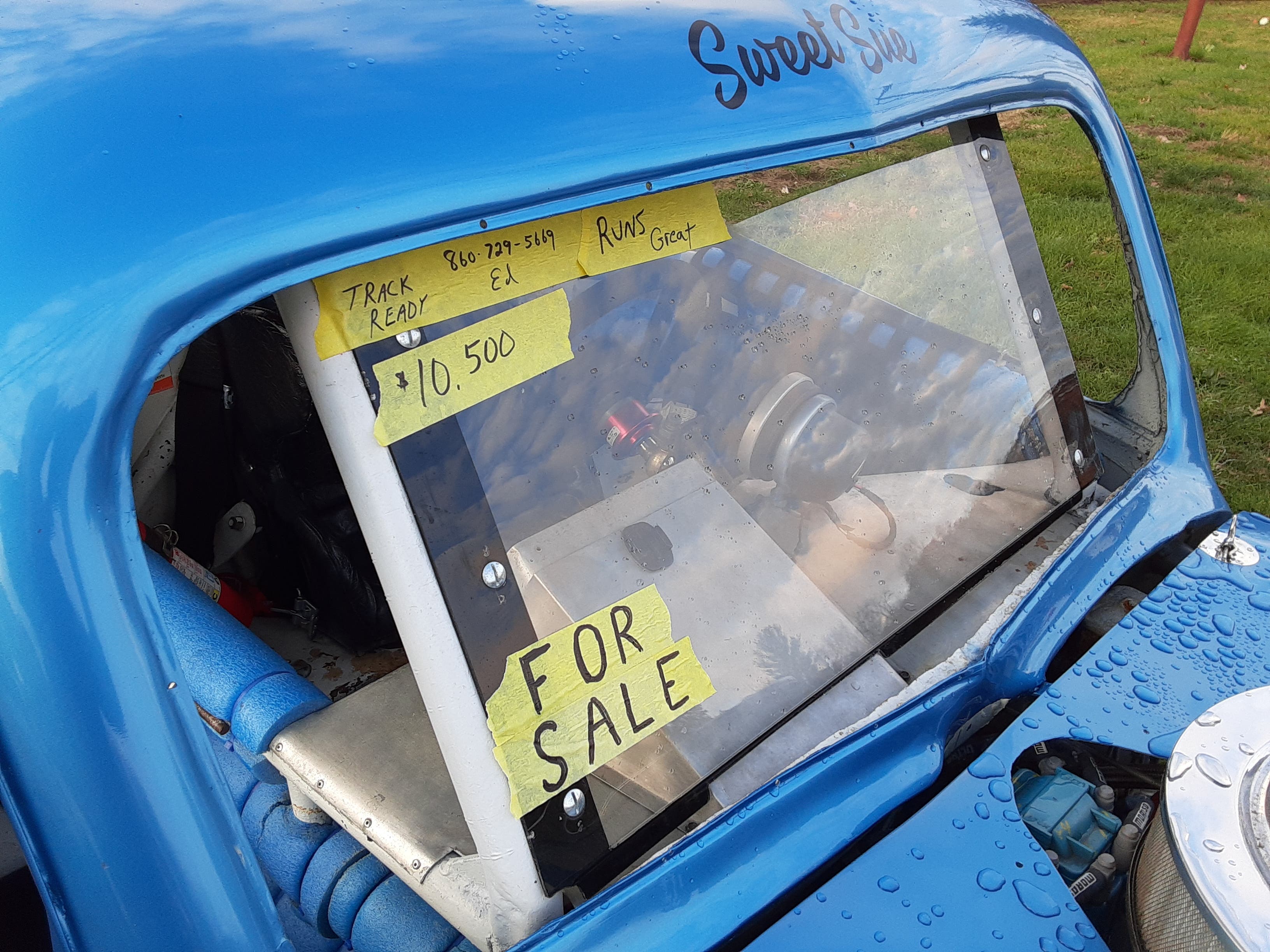 The car is a 1937 Chevrolet Coupe. Nicknamed "Sweet Sue." It was once owned by the late Les Hinckley, who raced on the regional circuit at track like Riverside, Stafford and Thompson.