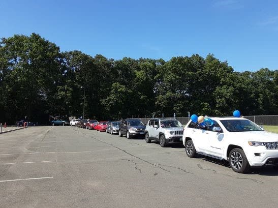 Parents and students lined their cars up in the student lot and paraded around the rear of the RHS campus. Awaiting them in front was a podium and a gathering of faculty members and town and education officials to cheer them on. Seniors were able to exit their vehicles for presentations and photo ops.