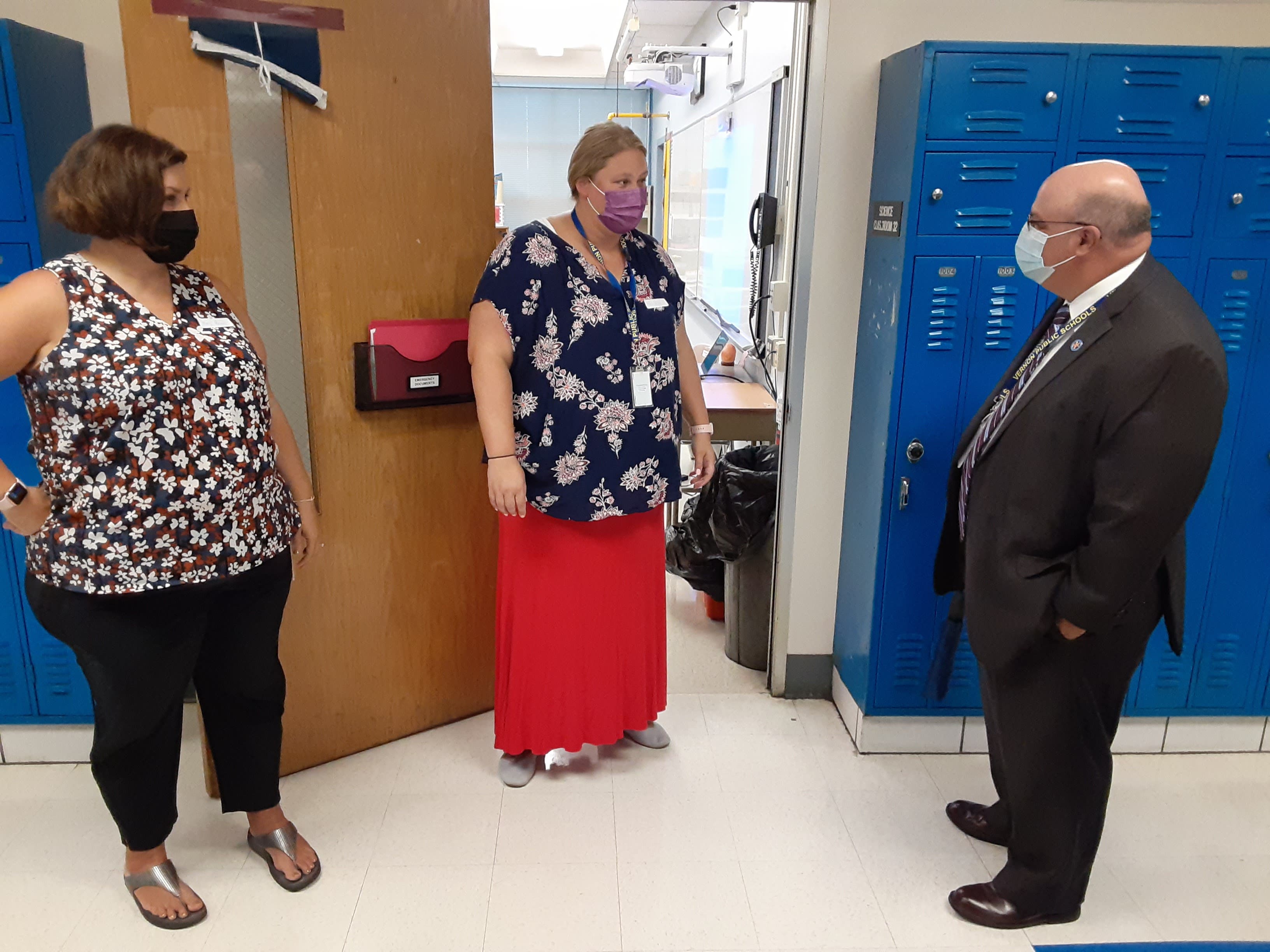 VCMS Principal David Caruso had a chance to show off the new furnishings at the school to Vernon Superintendent of Schools Joseph Macary and assistant superintendent Robert Testa during a morning tour of the building. The new desks and chairs are designed to give students a chance to be comfortable while still practicing social distancing to the best extent possible.