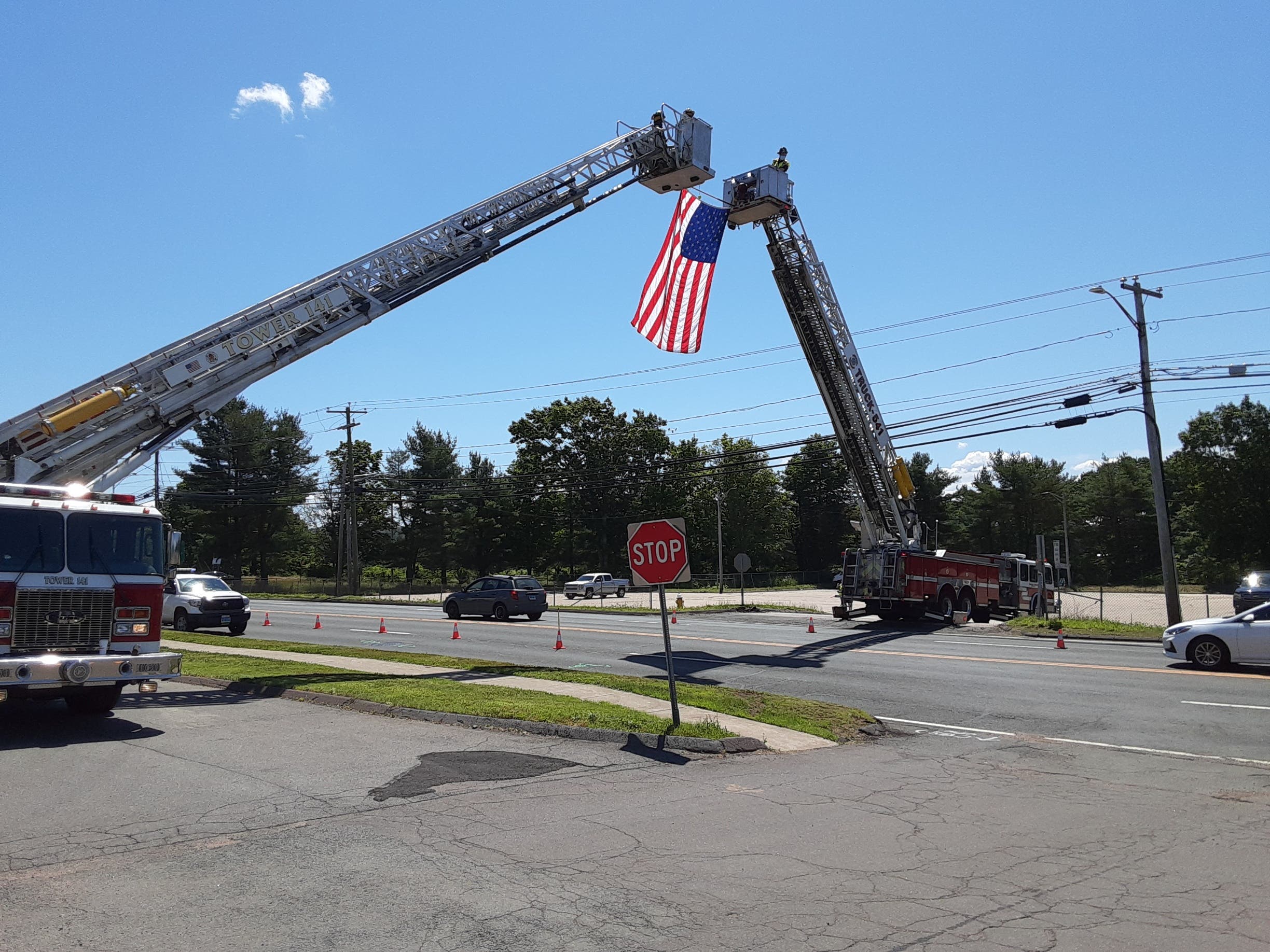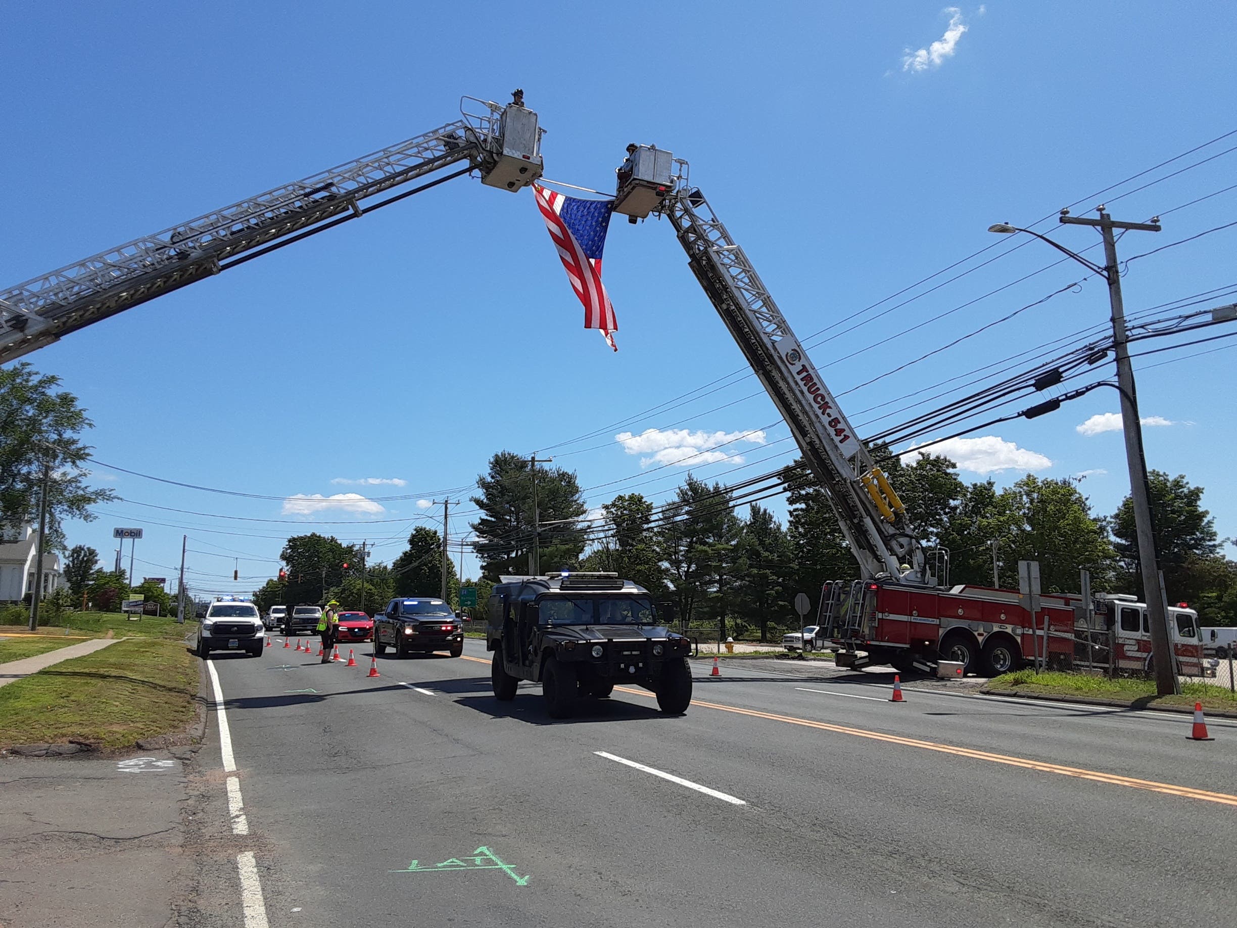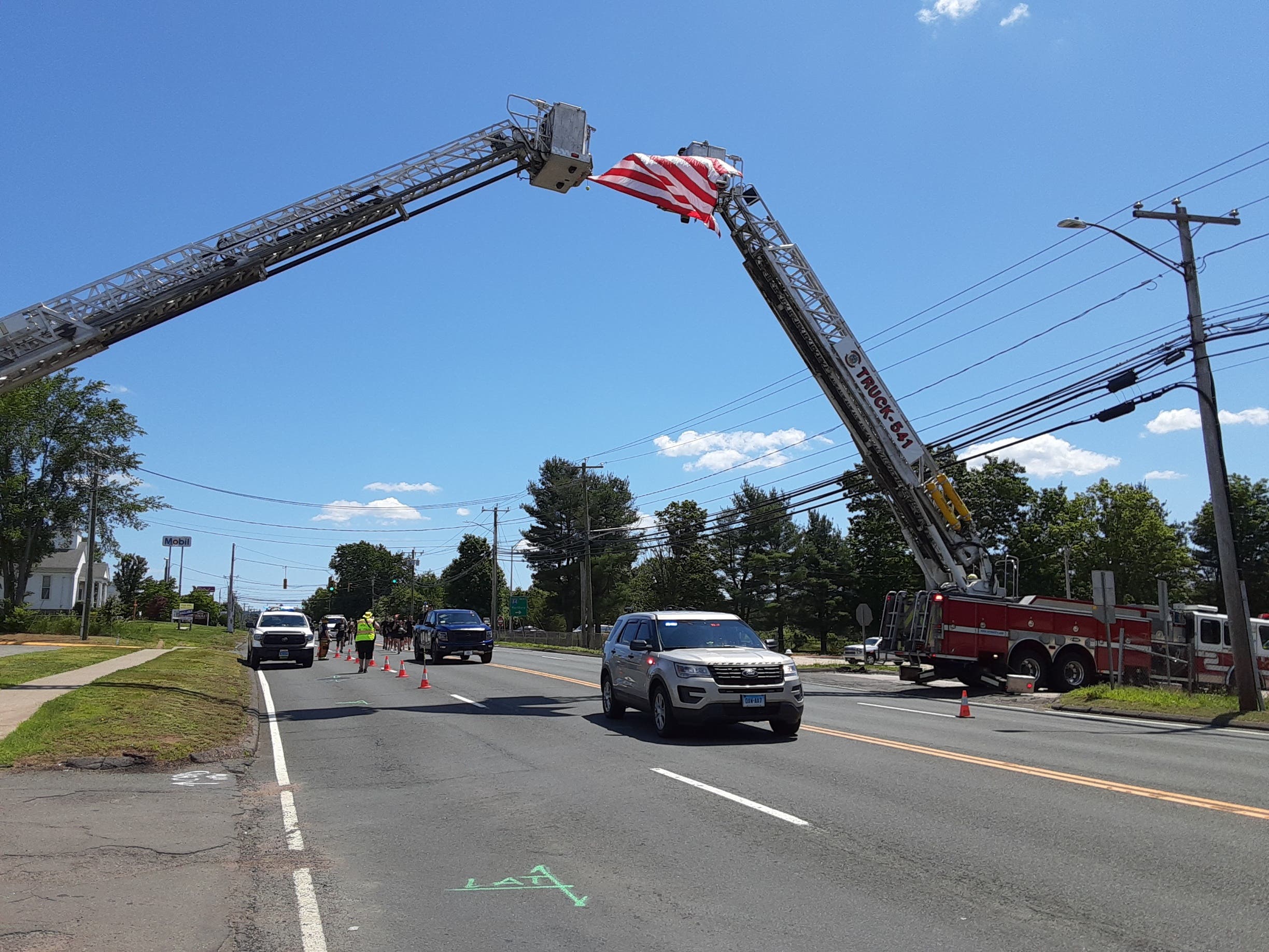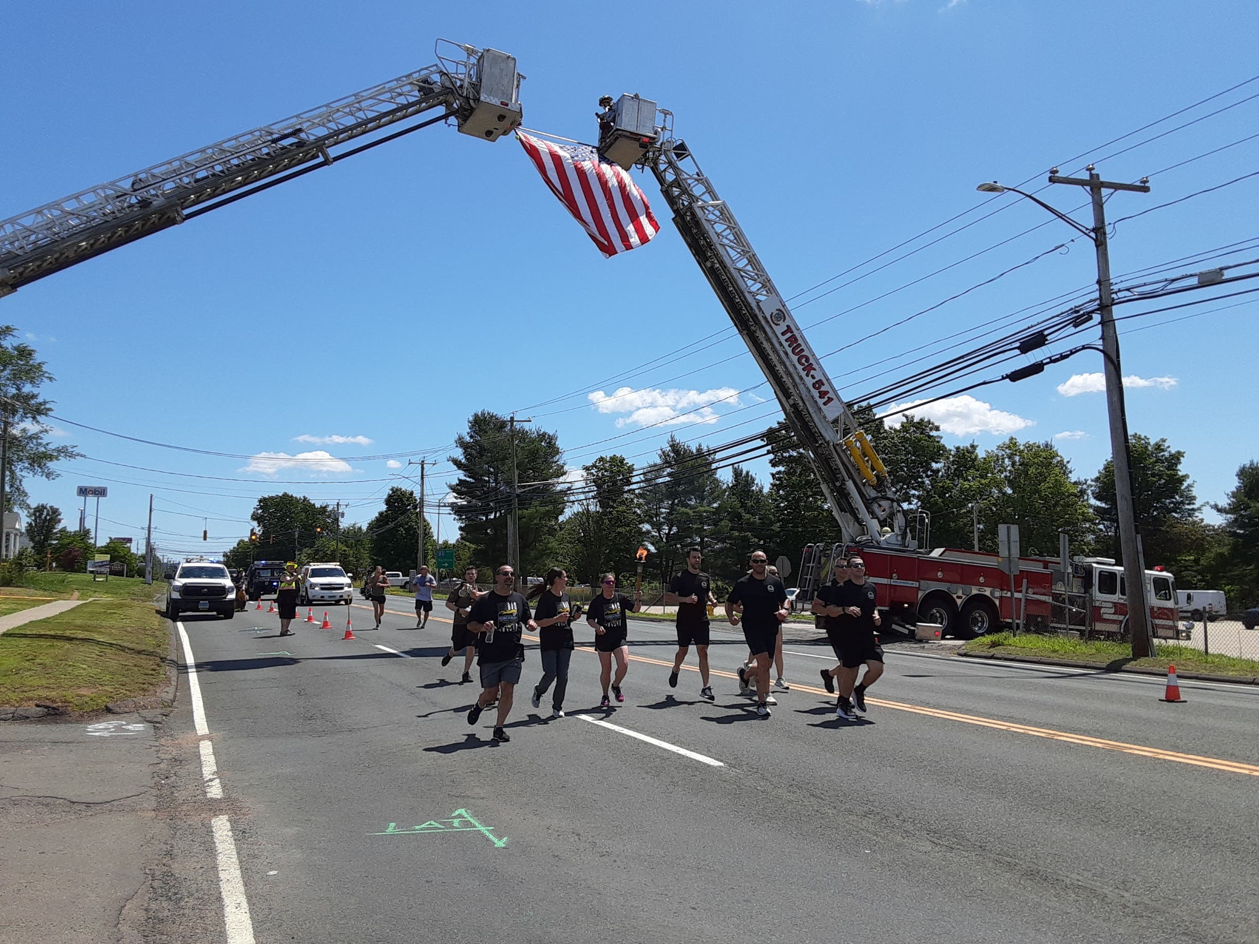 The Vernon Fire Department draped an America flag across out 30 for the runners.
