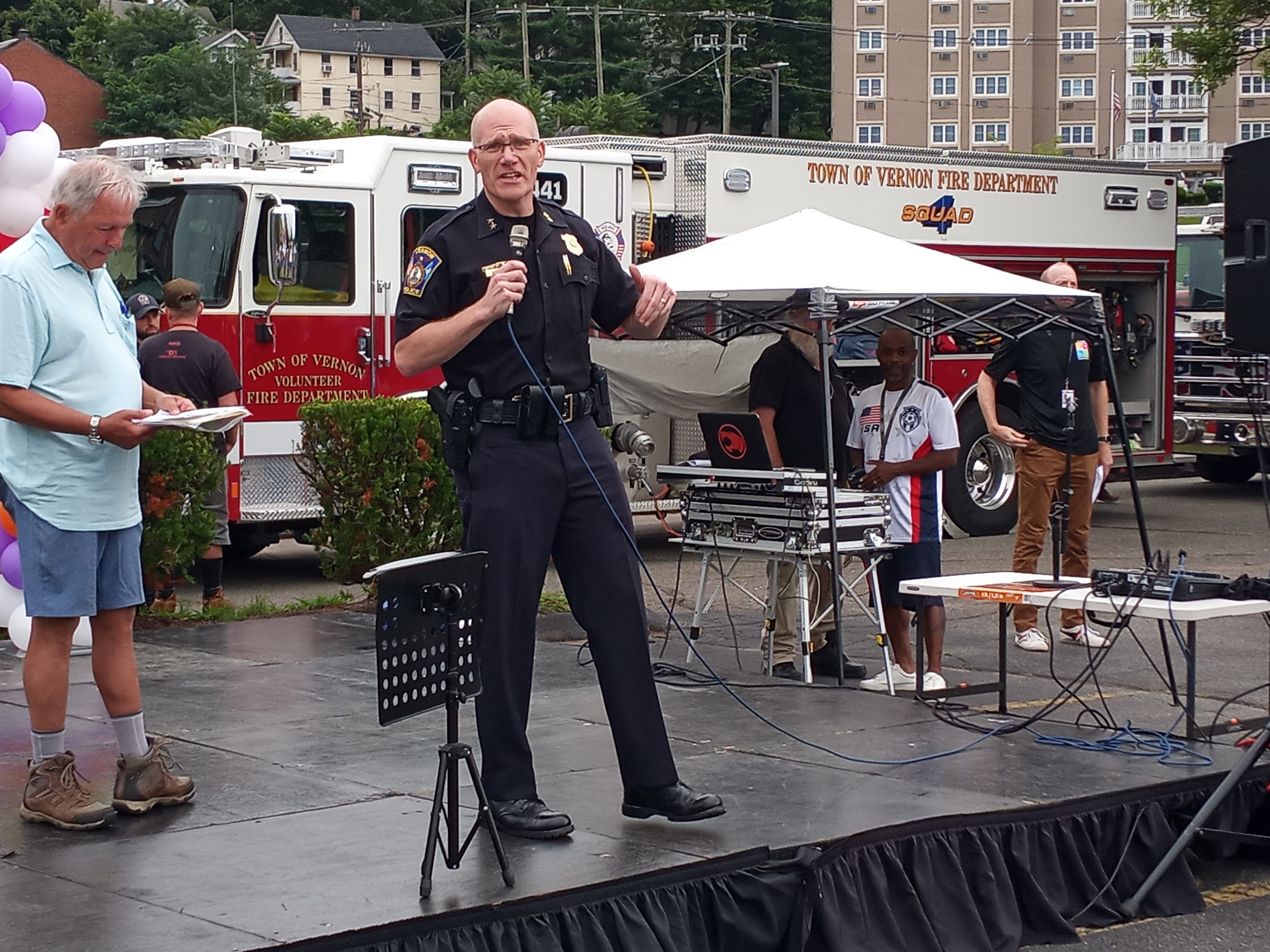 VERNON, CT — Two strong messages were delivered at Vernon's National Night Out celebration Tuesday — the police are committed to the community and the town is committed to beat addition through connection.