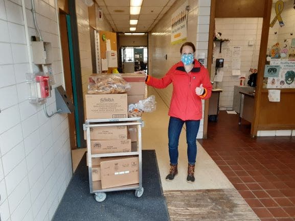 Elizabeth Fisher unloading meal supplies at VCMS. (Chris Dehnel/Patch)