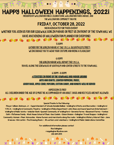WALLINGFORD, CT — The town’s Happy Halloween Happenings event will take place from 5:30 p.m. to 8 p.m. on Friday, Oct. 28.