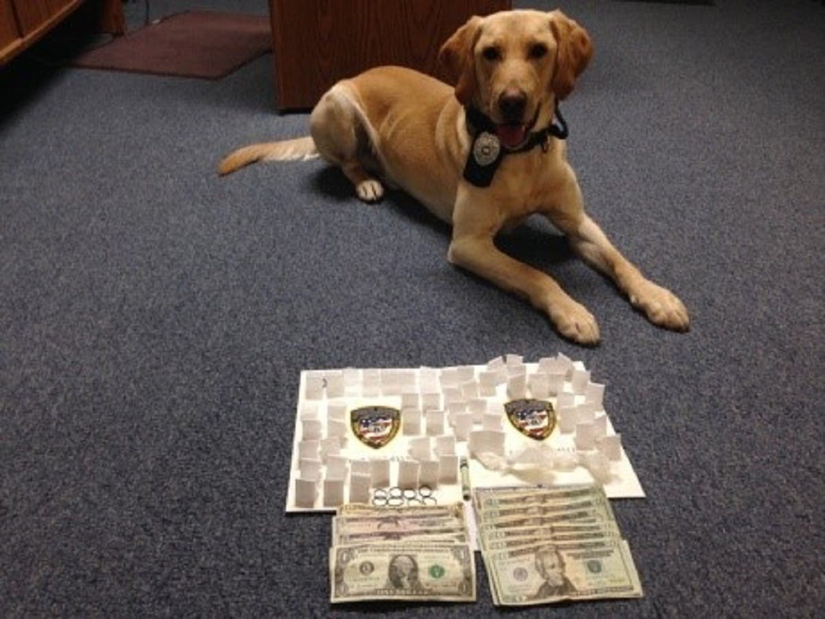 K-9 Tate helped sniff out the drug bust after officers observed drug packaging materials in plain view inside the vehicle, police said.