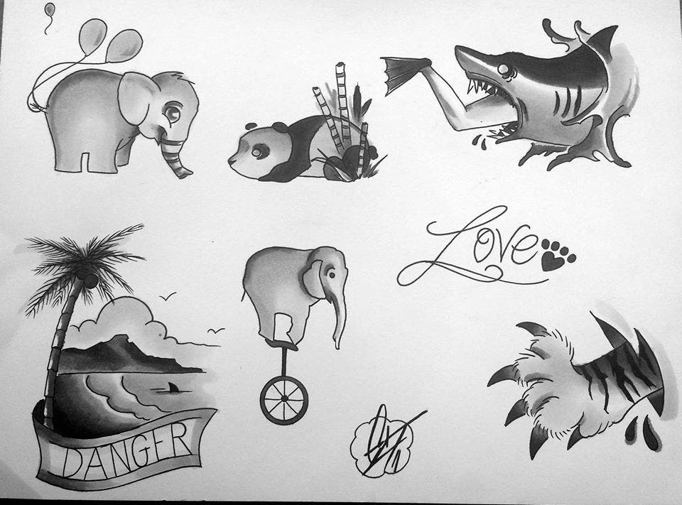 Each artist created a sheet of special tattoos to represent the animals (see photo, via the company’s Facebook page) and customers can choose any of the images for $60 and a portion of the proceeds will go toward the appropriate conservation effort.